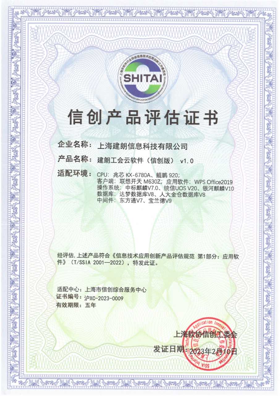 上海市經(jīng)濟和信息化委員會2020年度上海市軟件和集成電路產(chǎn)業(yè)發(fā)展專項資金項目(軟件和信息服務業(yè)領域)——基于國產(chǎn)軟硬件環(huán)境的網(wǎng)上工會平臺項目已順利完成專項驗收,建朗工會云產(chǎn)品獲得上海軟件協(xié)會信創(chuàng)工委會頒布的信創(chuàng)產(chǎn)品評估官方認證。