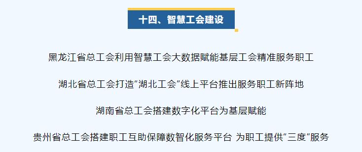 為落實全國總工會關(guān)于實施典型標桿的選樹培育和示范推廣建設(shè)工程有關(guān)要求,根據(jù)全國總工會主要領(lǐng)導(dǎo)同志指示,定期分領(lǐng)域發(fā)布全國工會重點工作創(chuàng)新案例,供各級工會相互學習借鑒,并結(jié)合實際推廣應(yīng)用。