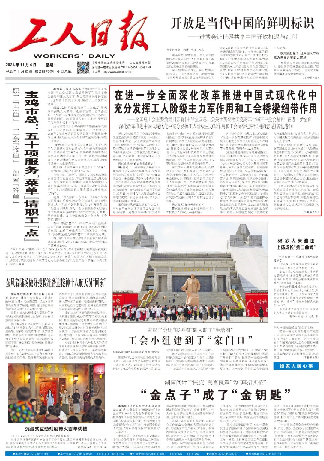 《意見》提出的指導(dǎo)思想是:堅持以習(xí)近平新時代中國特色社會主義思想為指導(dǎo),全面貫徹黨的二十大和二十屆二中、三中全會精神,深入學(xué)習(xí)貫徹習(xí)近平總書記關(guān)于全面深化改革的一系列新思想、新觀點(diǎn)、新論斷,深入貫徹落實(shí)習(xí)近平總書記關(guān)于工人階級和工會工作的重要論述,緊緊圍繞新時代黨的中心任務(wù),始終聚焦政治性、先進(jìn)性、群眾性,積極響應(yīng)時代呼喚,重點(diǎn)突出職工創(chuàng)新創(chuàng)造、工會維權(quán)服務(wù),大力弘揚(yáng)勞模精神、勞動精神、工匠精神,堅持守正創(chuàng)新、與時俱進(jìn)、求真務(wù)實(shí)、開拓進(jìn)取,更加注重體系化構(gòu)建,更加注重重點(diǎn)領(lǐng)域攻堅突破,更加注重能力水平提升,更加注重實(shí)績成效,推動工人階級更加充分發(fā)揮主力軍作用、彰顯主人翁地位,促進(jìn)工會更加深入改革體制機(jī)制、改進(jìn)方式方法,努力為中國式現(xiàn)代化提供強(qiáng)大階級基礎(chǔ)和有力人才支撐。